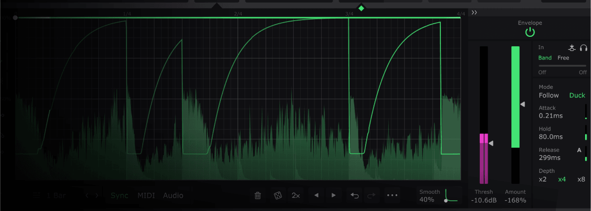 Just turn on the Envelope Follower for the famous ducked reverb effect in 1 click. The ambience moves out of the way of vocals and instruments automatically, keeping them upfront and crystal clear.